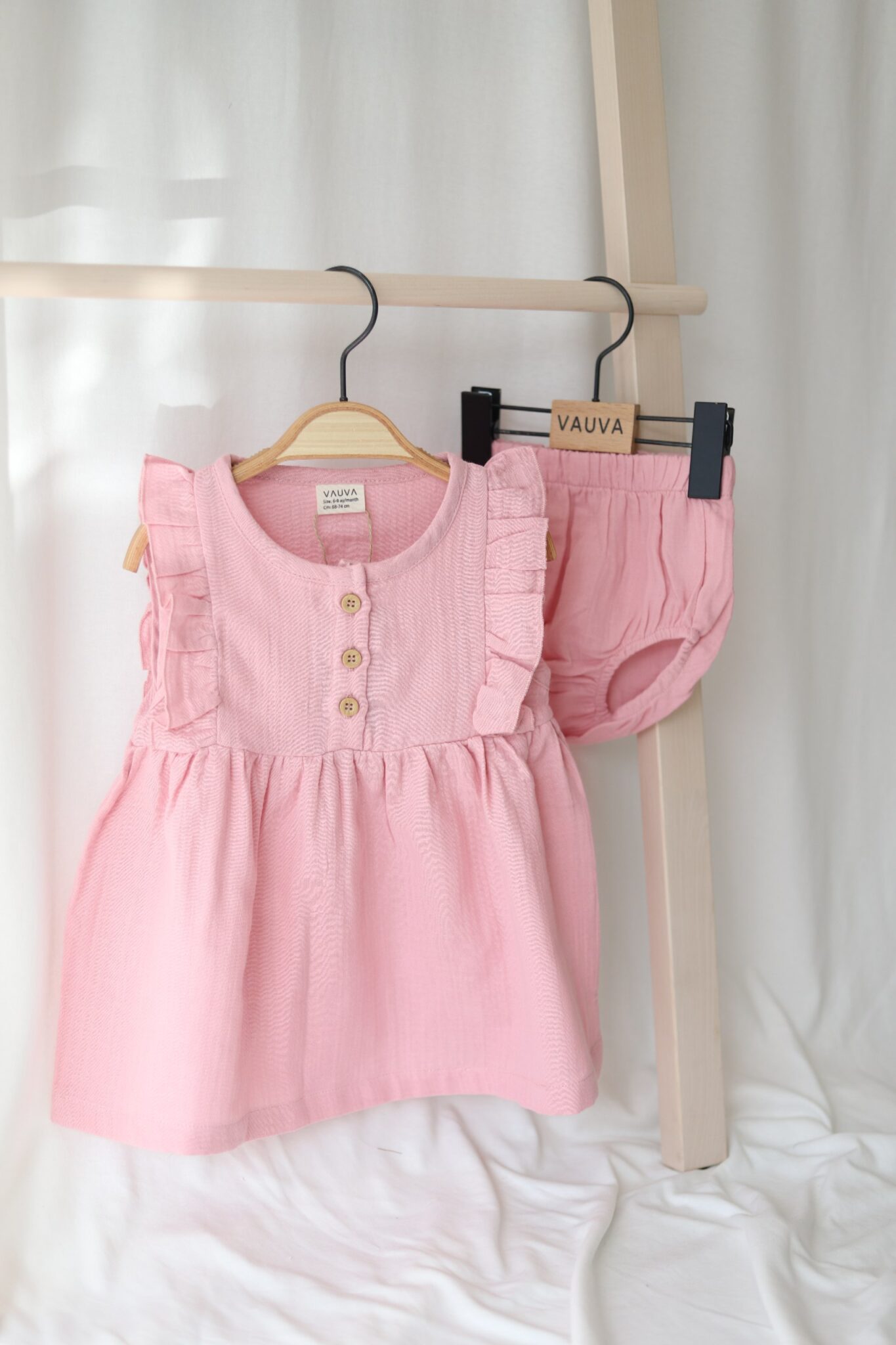 Pehme puuvillane kleit. Komplektis püksikud elastse vöökohaga.